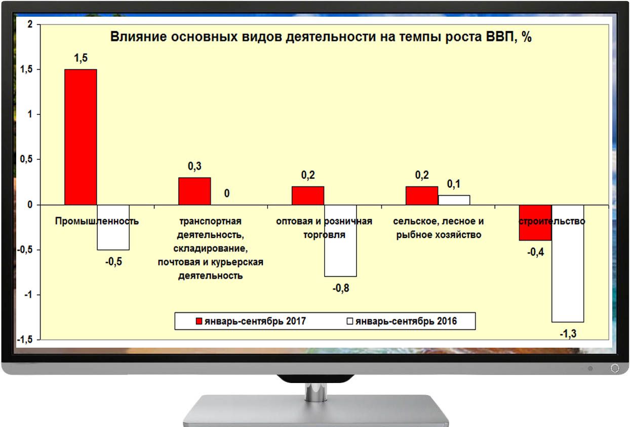 Сохранены положительные тенденции в основных отраслях экономики, в т.ч. в промышленности, сельском хозяйстве, на транспорте и в оптовой торговле. Растет производство многих видов продукции. На 1 октября т.г. запасы готовой продукции оказались на самом низком уровне за последние 5 лет – 60% к среднемесячному объему производства. Доля убыточных организаций снизилась с 21% по итогам 8 месяцев 2016 г. до 18,8% в январе–августе т.г., а чистая прибыль выросла на 75,7% (в текущих ценах).