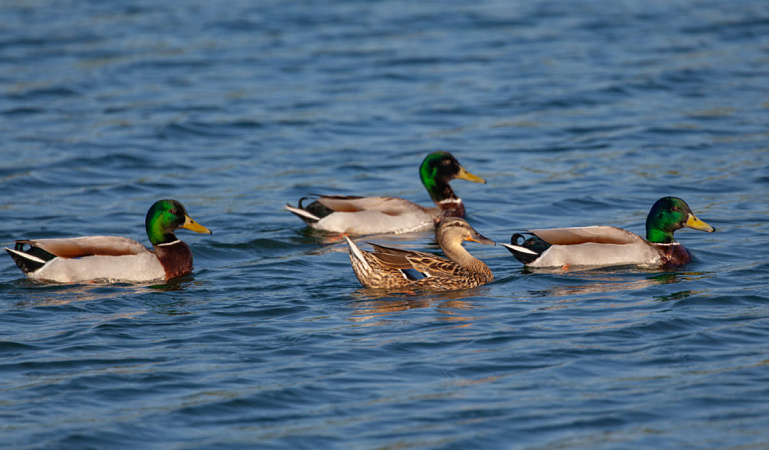 - селезни уток: кряква, свиязь, гоголь, широконоска, чернеть хохлатая, чирок-трескунок и чирок-свистунок, серая утка;